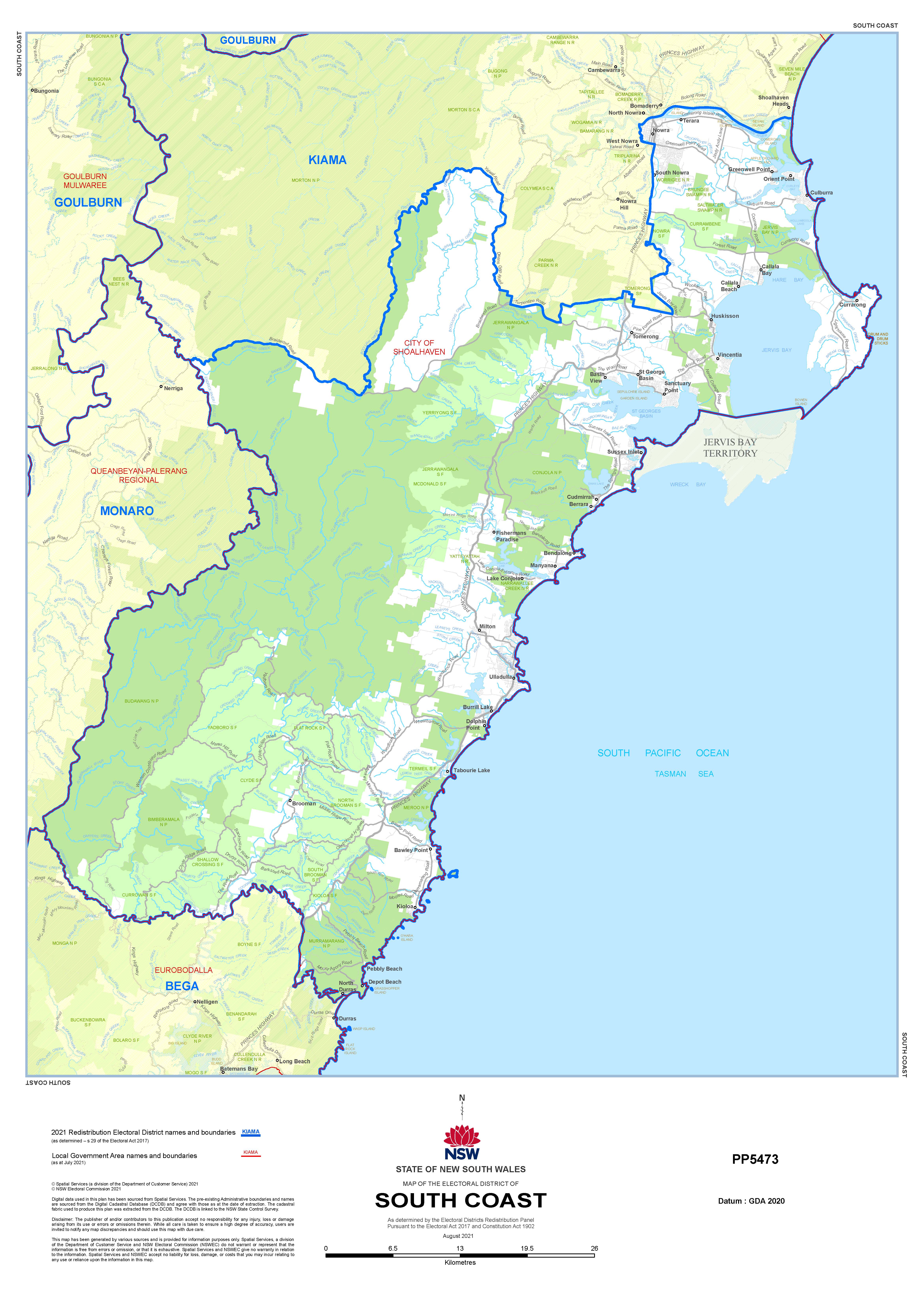 South Coast is an electoral district of the Legislative Assembly in the Australian state of New South Wales and sits within the Federal seat of Gilmore.
